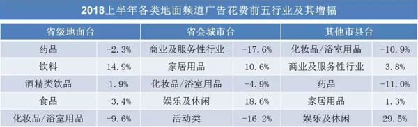 從各類地面頻道的廣告花費前五行業數據來看,省級地面臺的藥品、飲料、酒精類排在前三,省會城市臺和其他市縣臺商業及服務性行業、化妝品/浴室用品排在前三位置。所以總的來講地面臺以及區域臺更主要還是以區域化的品牌為主,這是大家的經營現狀,更多的是來自于商業服務性行業,娛樂休閑、活動類等等收入。對于各類地面臺來說,大品牌的收入已經被上一層的媒體覆蓋掉,現狀就是區域臺更多的是傾向于服務區域商業